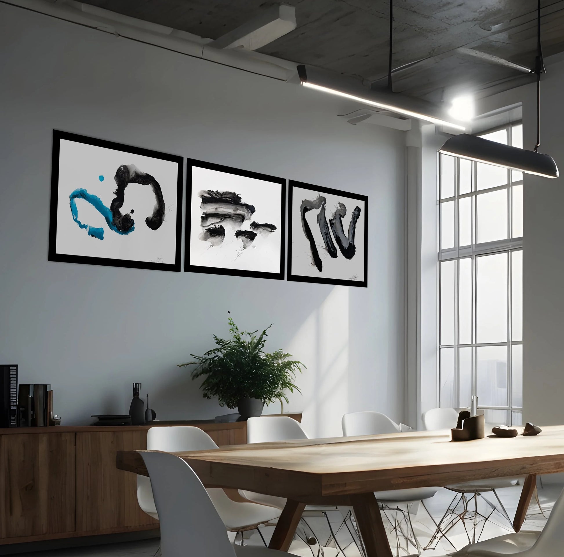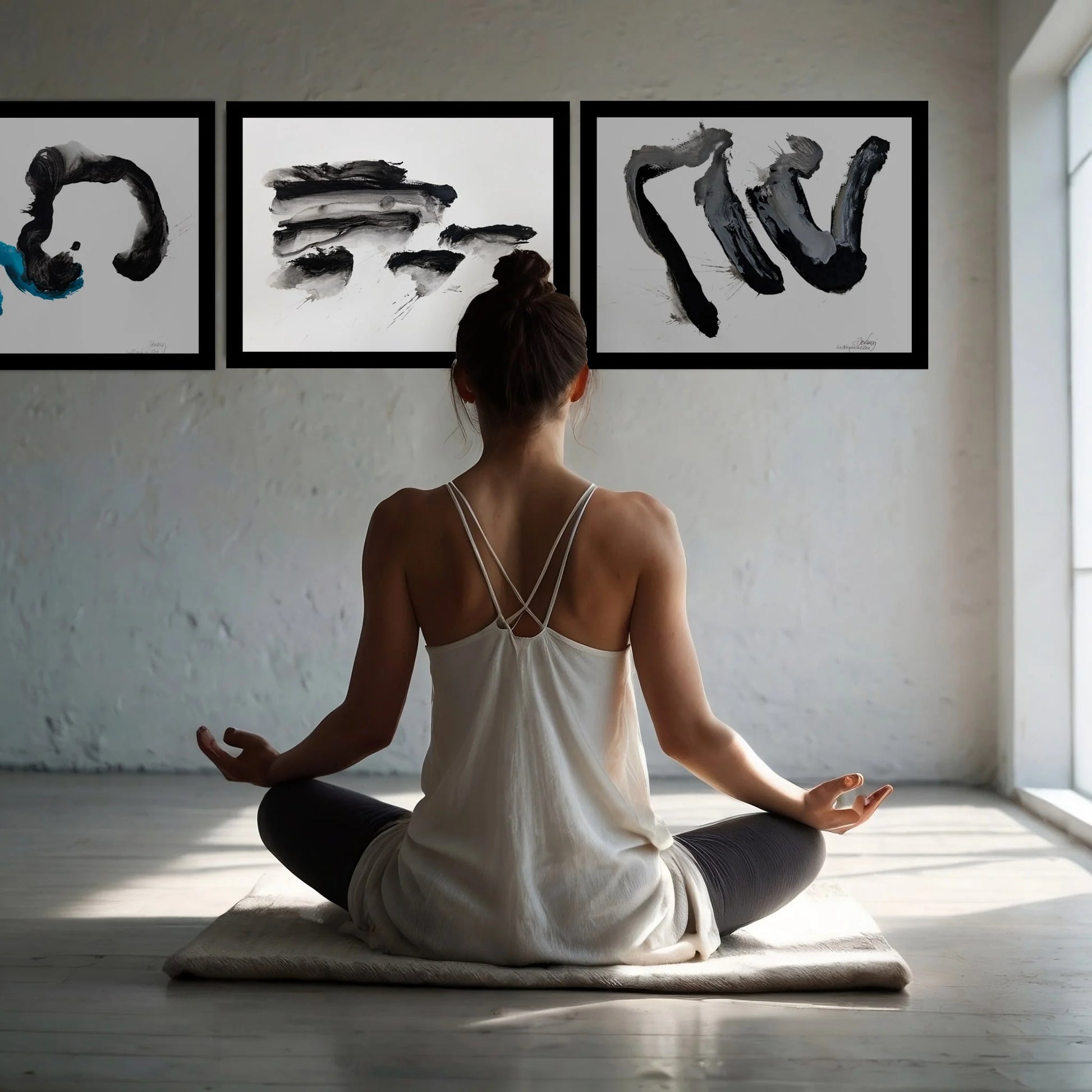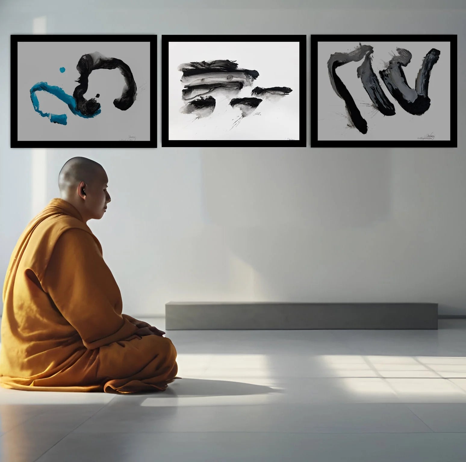 Los cuadros de la serie "La Alegría del Zen" son un camino pictórico de pinceladas libres y vacías de pensamientos realizadas en un estado meditativo de sensibilidad de la Armonía y la Fuerza del Caos.