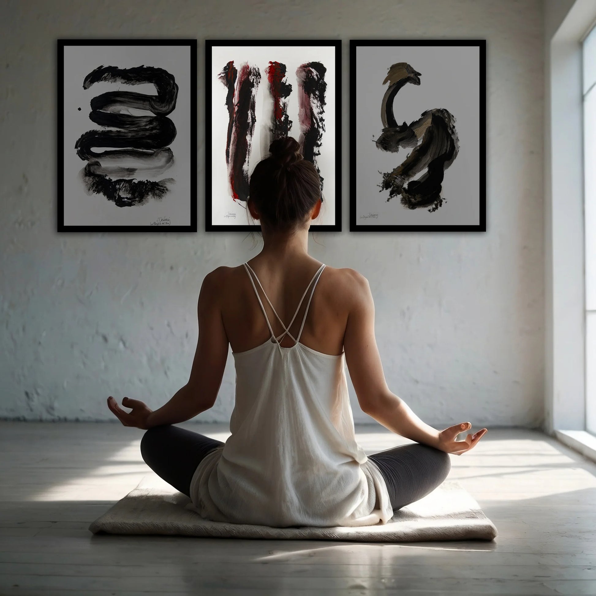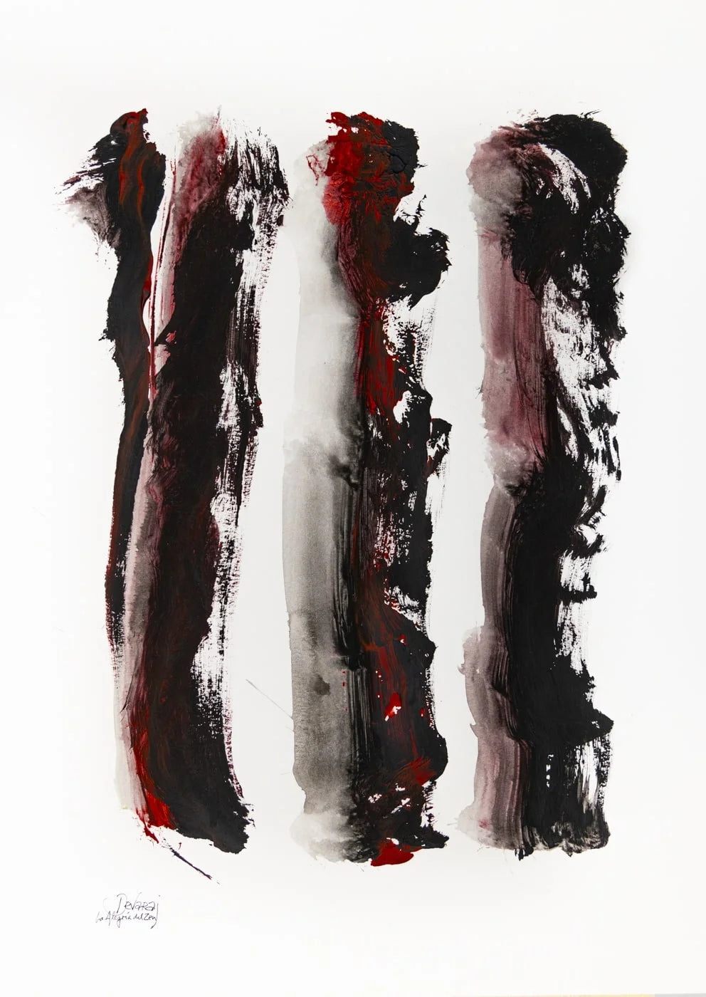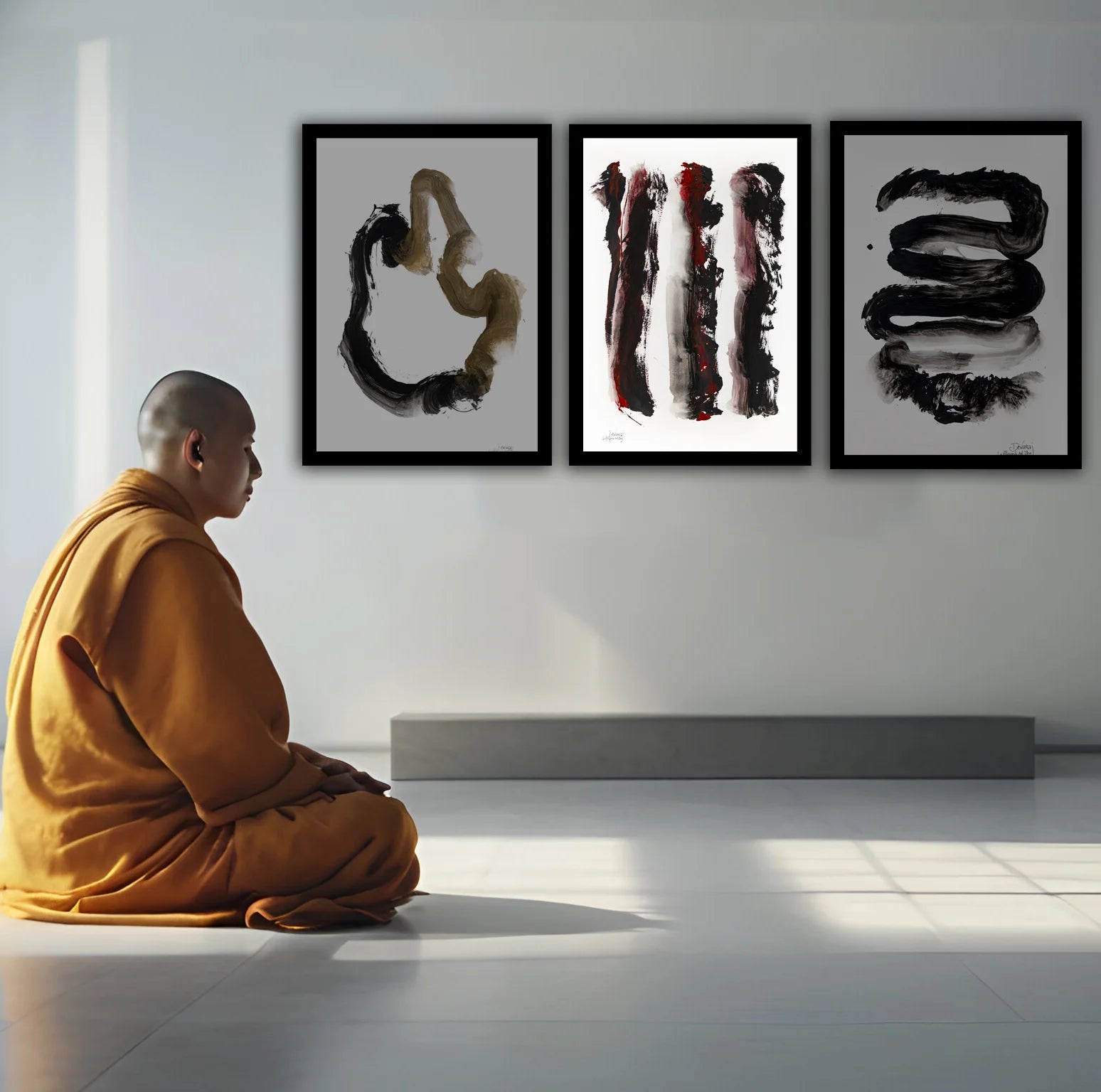 Los cuadros de la serie "La Alegría del Zen" son un camino pictórico de pinceladas libres y vacías de pensamientos realizadas en un estado meditativo de sensibilidad de la Armonía y la Fuerza del Caos.