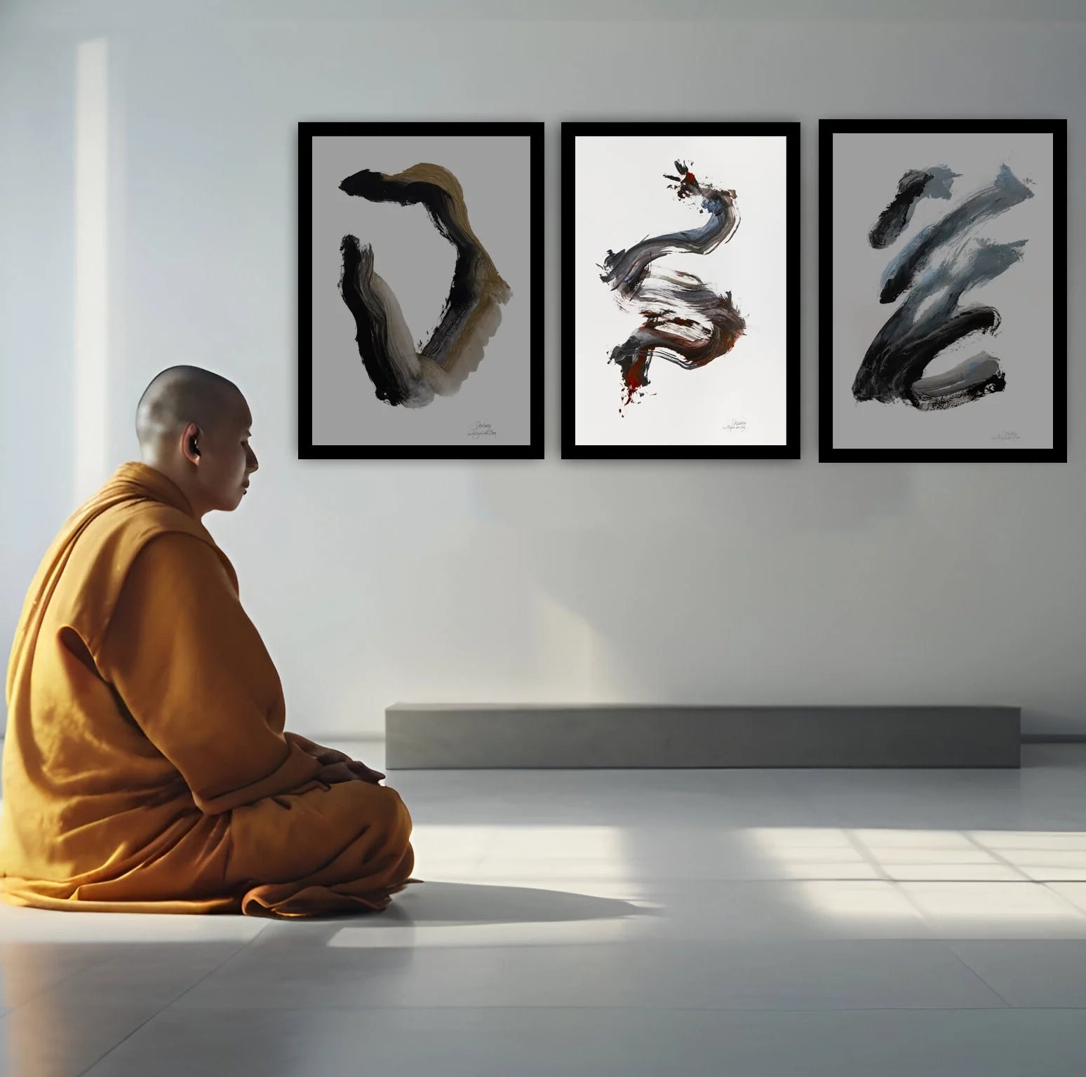 Los cuadros de la serie "La Alegría del Zen" son un camino pictórico de pinceladas libres y vacías de pensamientos realizadas en un estado meditativo de sensibilidad de la Armonía y la Fuerza del Caos.