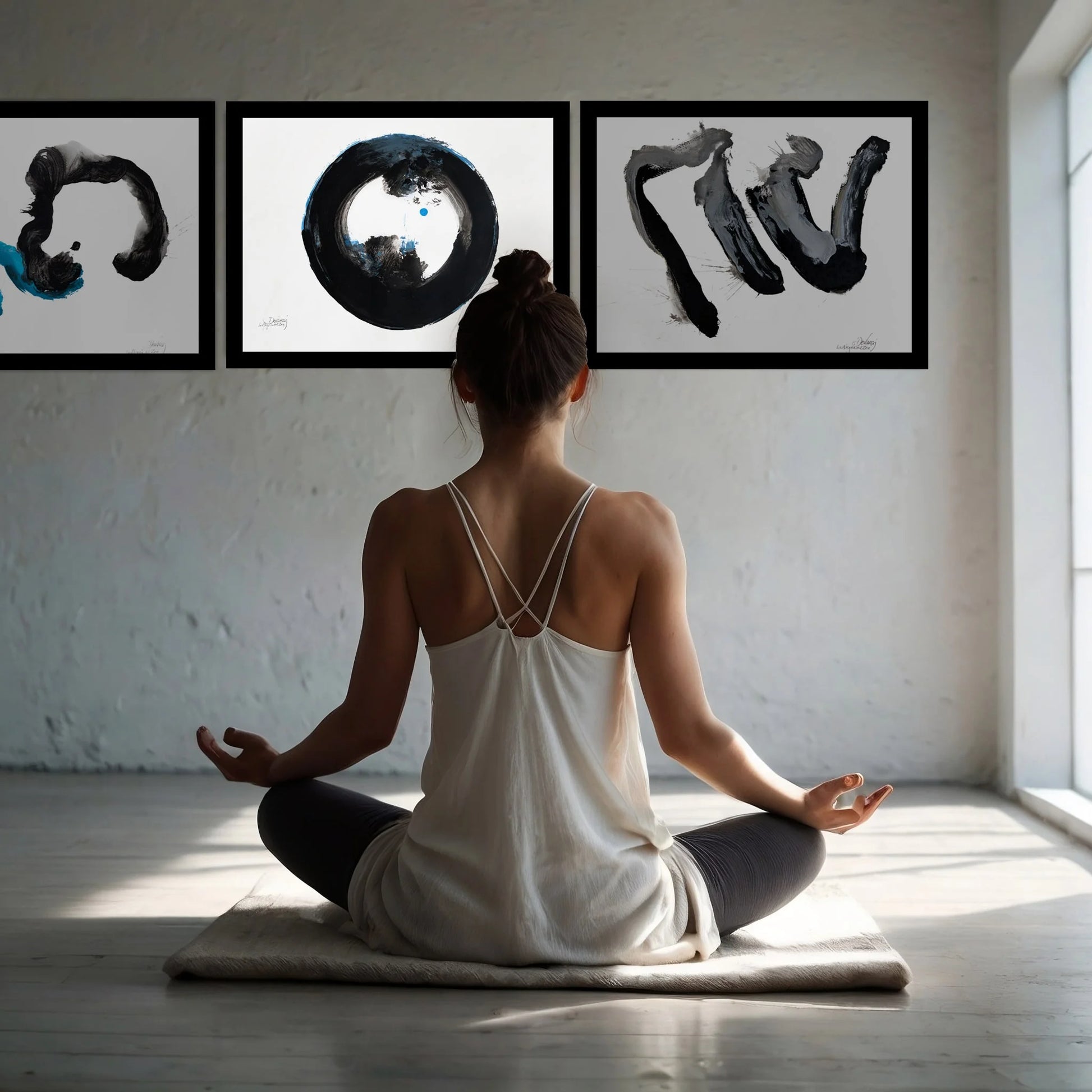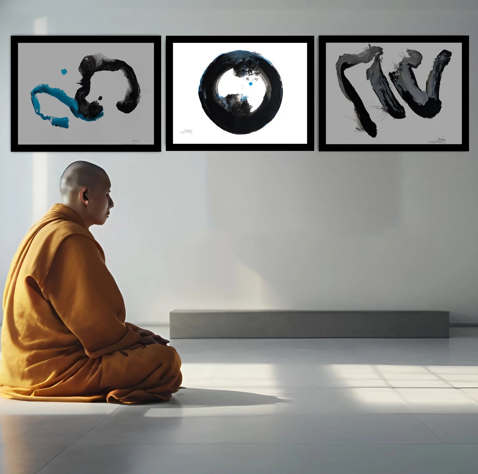 Los cuadros de la serie "La Alegría del Zen" son un camino pictórico de pinceladas libres y vacías de pensamientos realizadas en un estado meditativo de sensibilidad de la Armonía y la Fuerza del Caos.