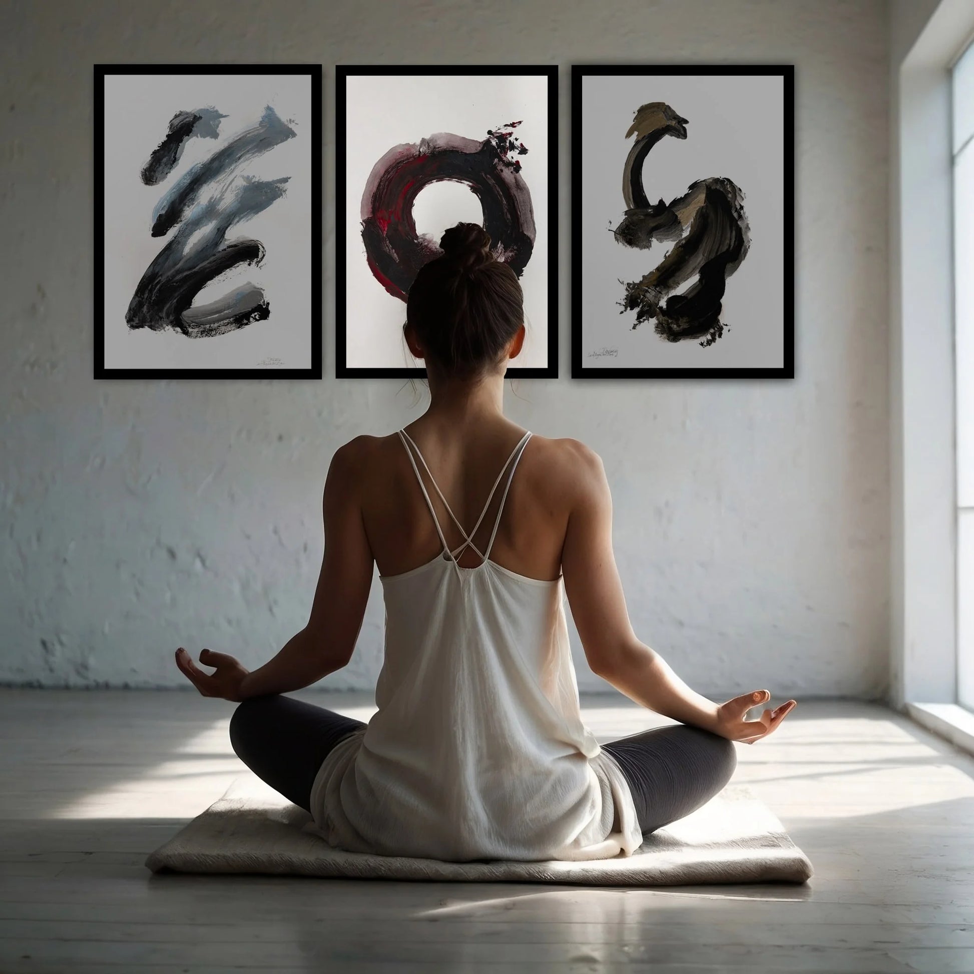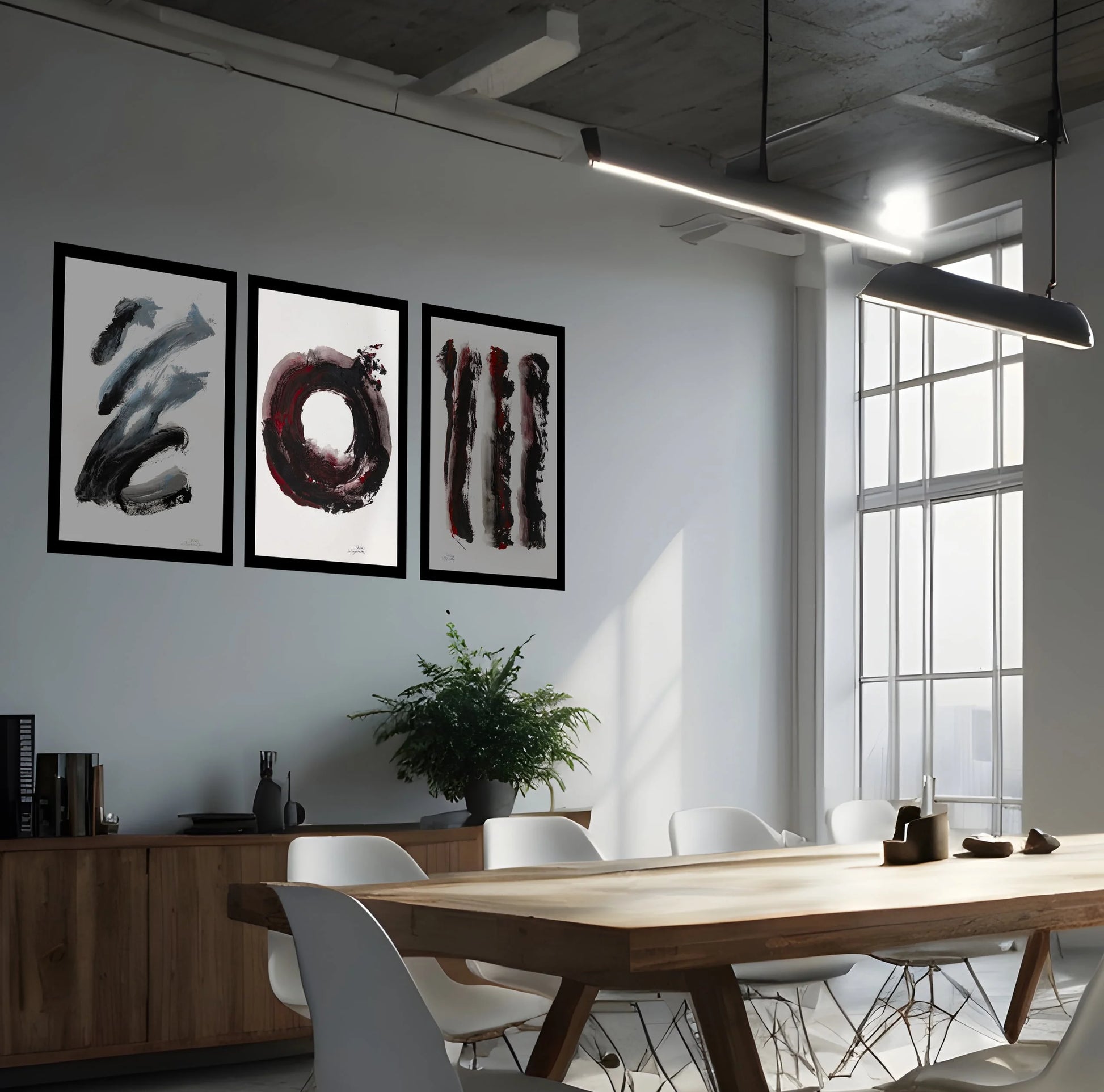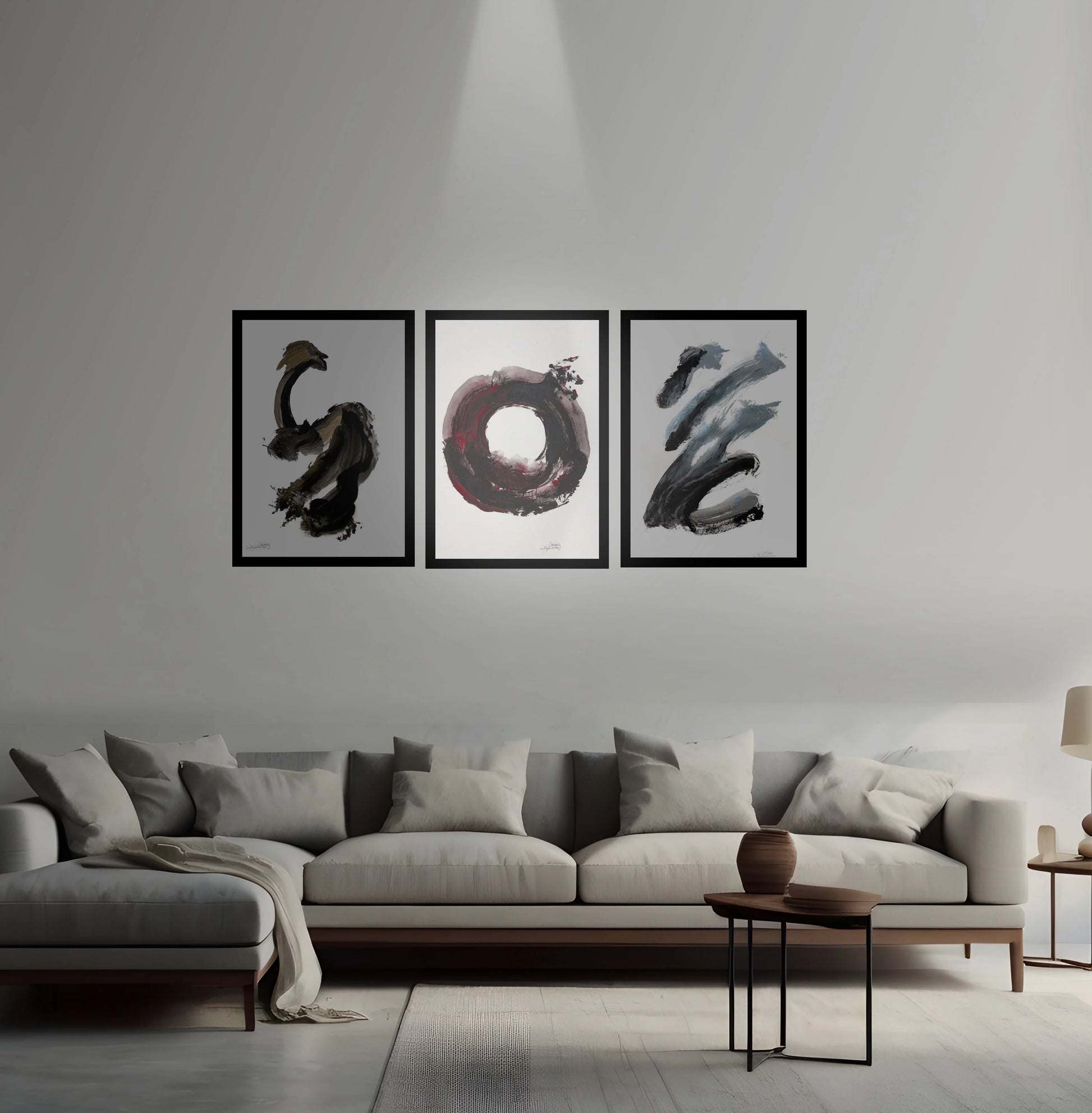 Los cuadros de la serie "La Alegría del Zen" son un camino pictórico de pinceladas libres y vacías de pensamientos realizadas en un estado meditativo de sensibilidad de la Armonía y la Fuerza del Caos.