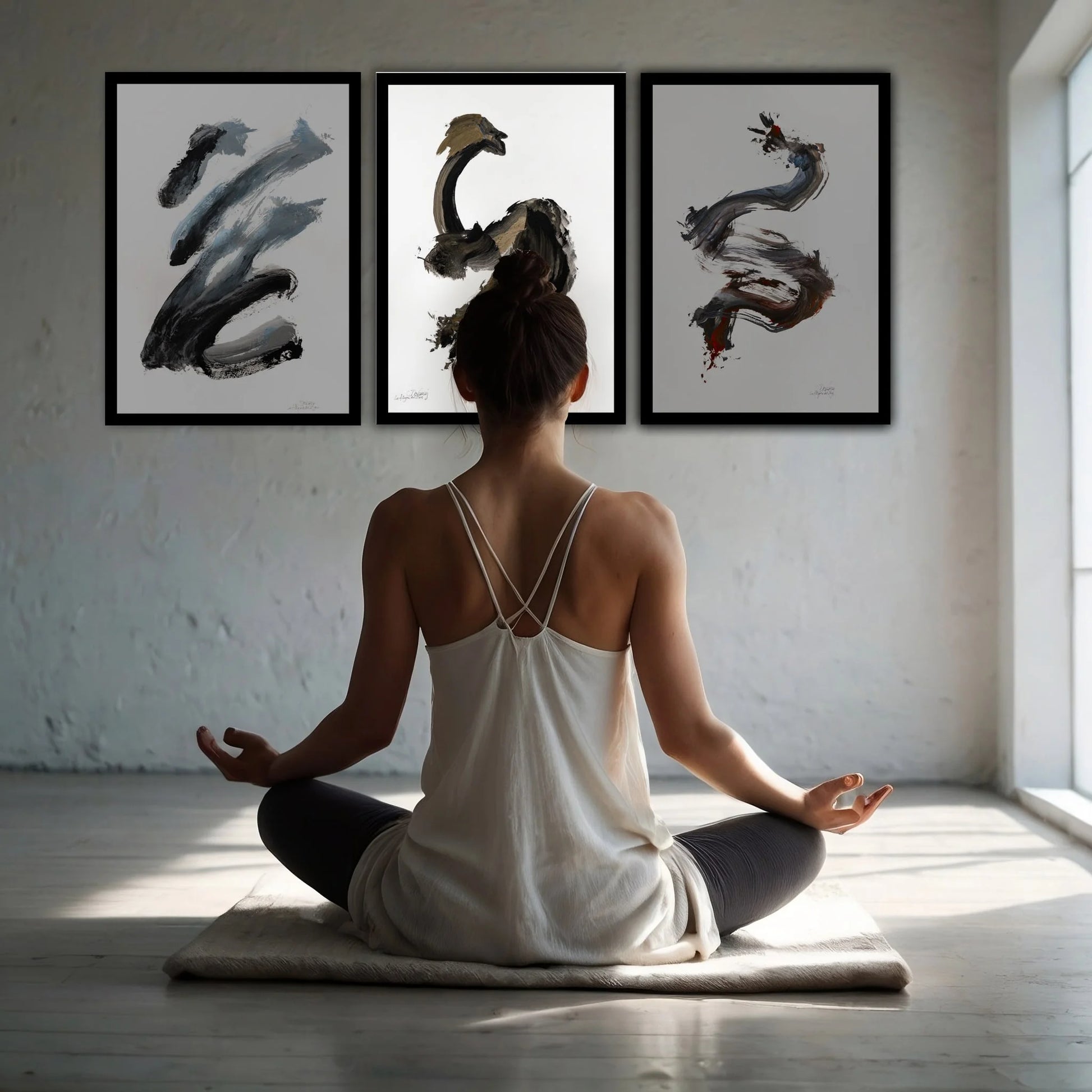 Los cuadros de la serie "La Alegría del Zen" son un camino pictórico de pinceladas libres y vacías de pensamientos realizadas en un estado meditativo de sensibilidad de la Armonía y la Fuerza del Caos.