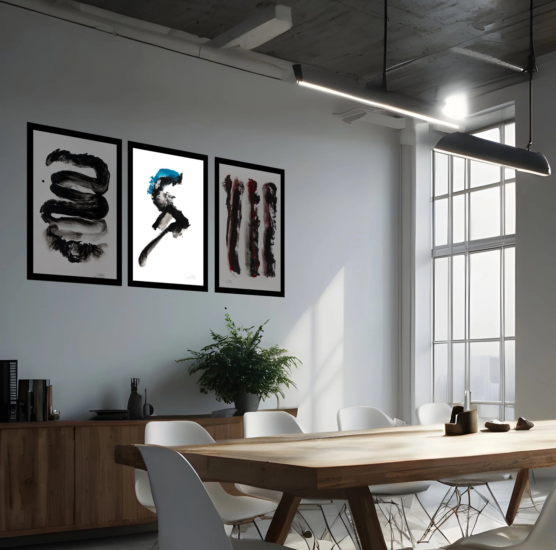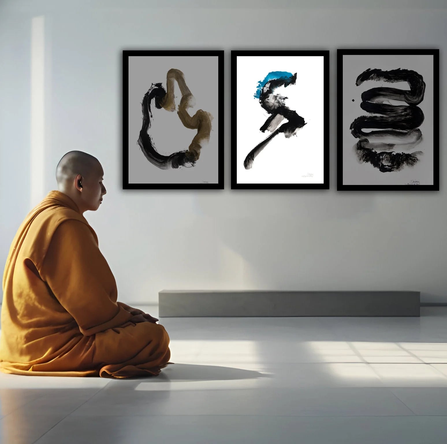 Los cuadros de la serie "La Alegría del Zen" son un camino pictórico de pinceladas libres y vacías de pensamientos realizadas en un estado meditativo de sensibilidad de la Armonía y la Fuerza del Caos.
