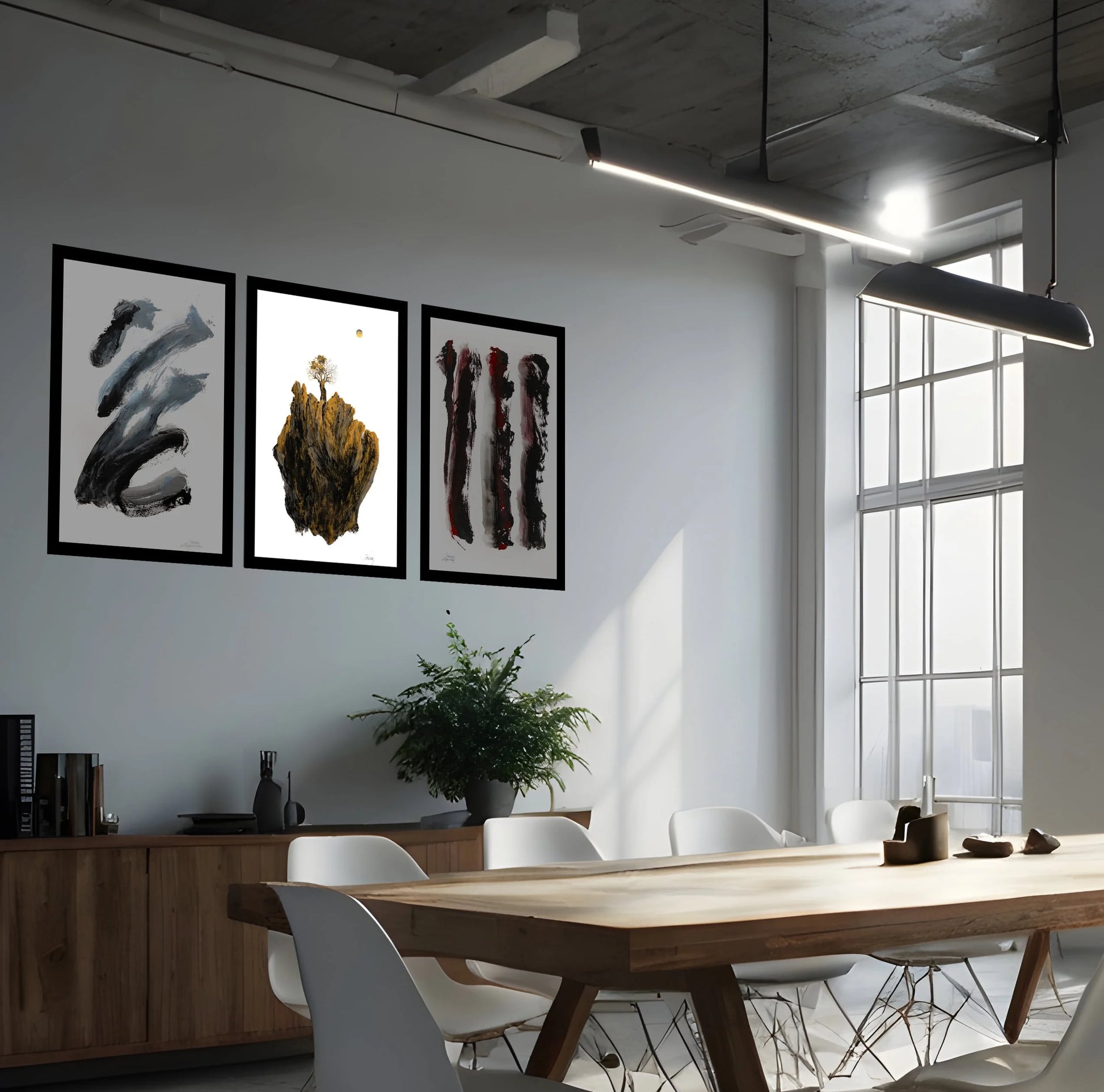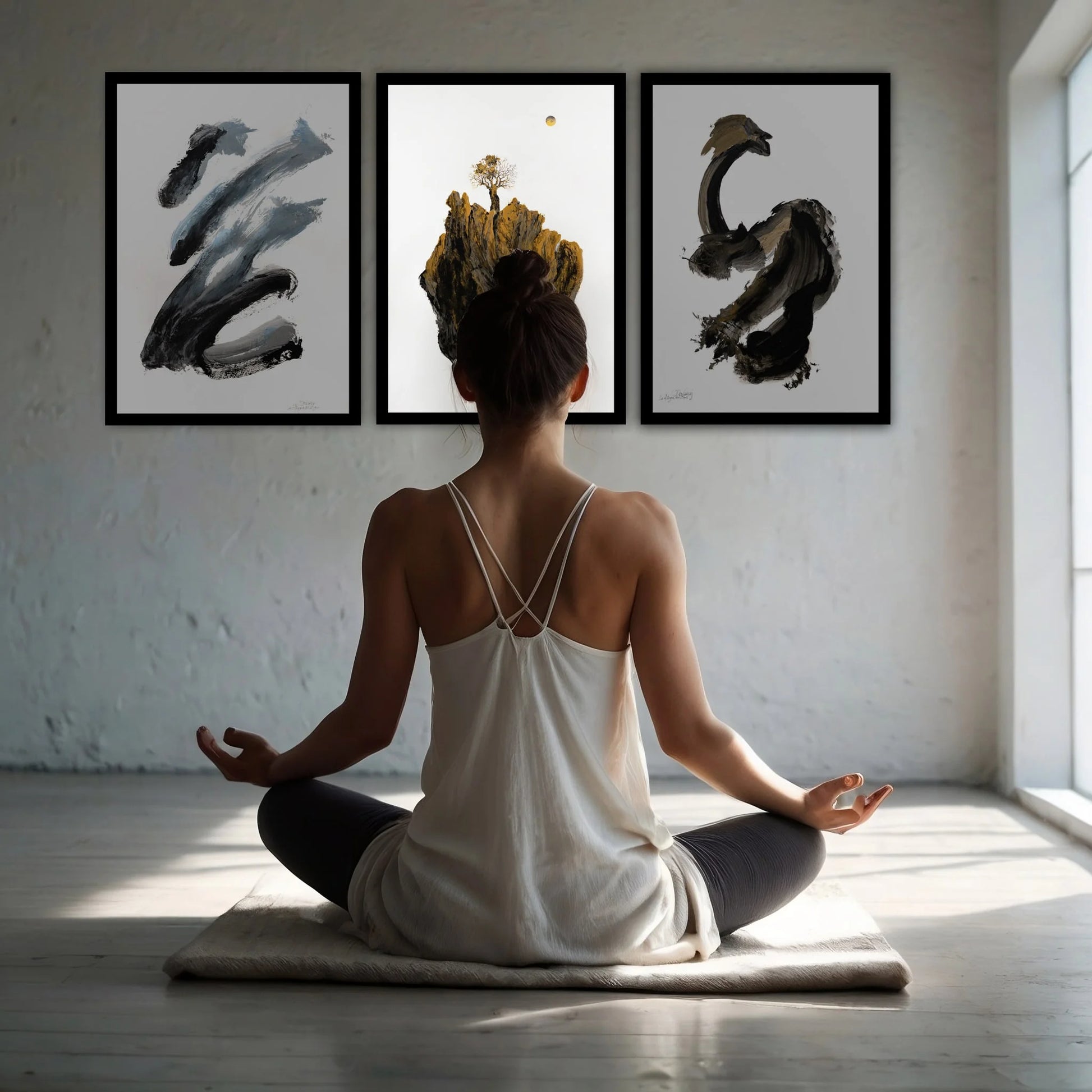 Los cuadros de la serie "La Alegría del Zen" son un camino pictórico de pinceladas libres y vacías de pensamientos realizadas en un estado meditativo de sensibilidad de la Armonía y la Fuerza del Caos.