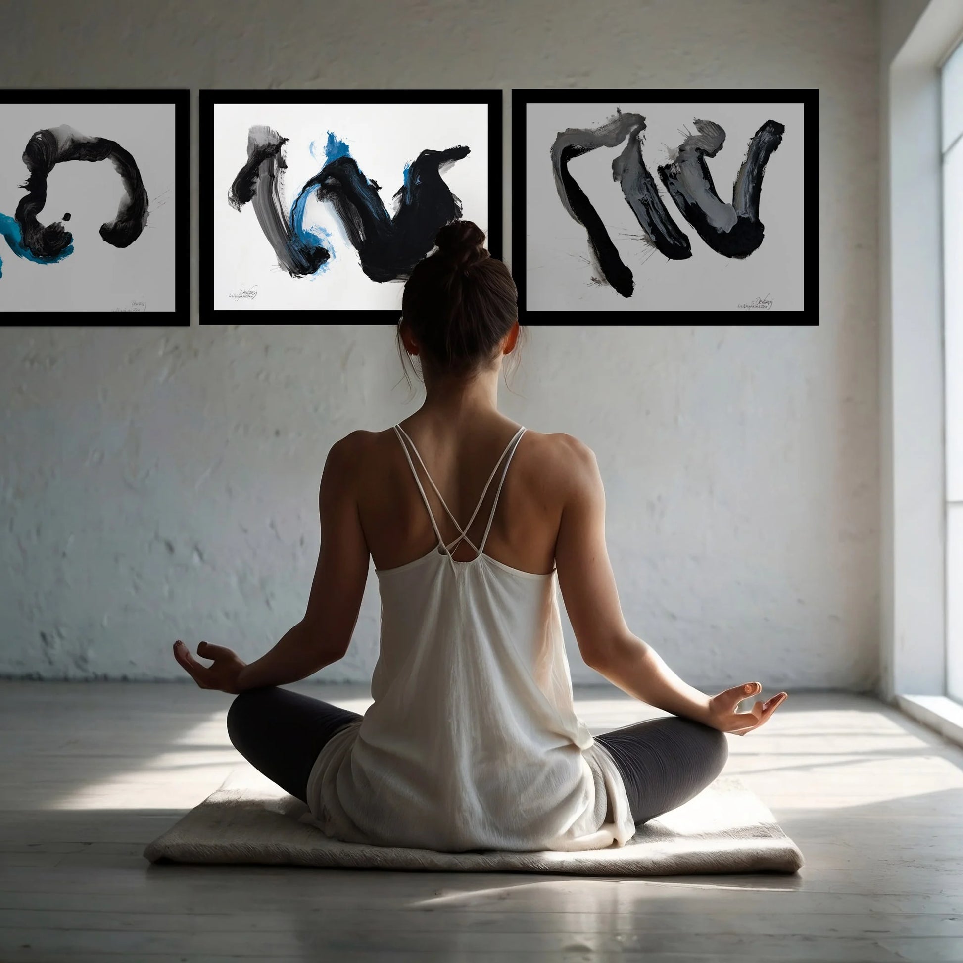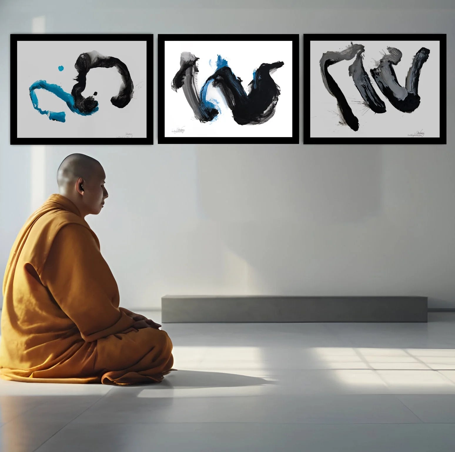Los cuadros de la serie "La Alegría del Zen" son un camino pictórico de pinceladas libres y vacías de pensamientos realizadas en un estado meditativo de sensibilidad de la Armonía y la Fuerza del Caos.